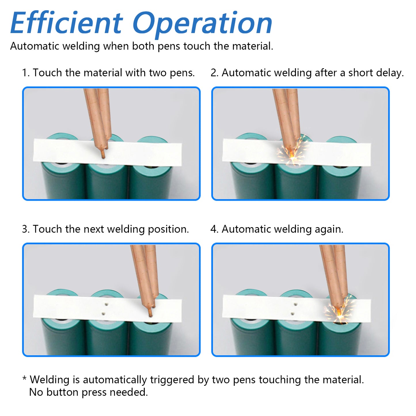 Touch the material with the two pens to trigger automatic welding, ensuring efficiency.
