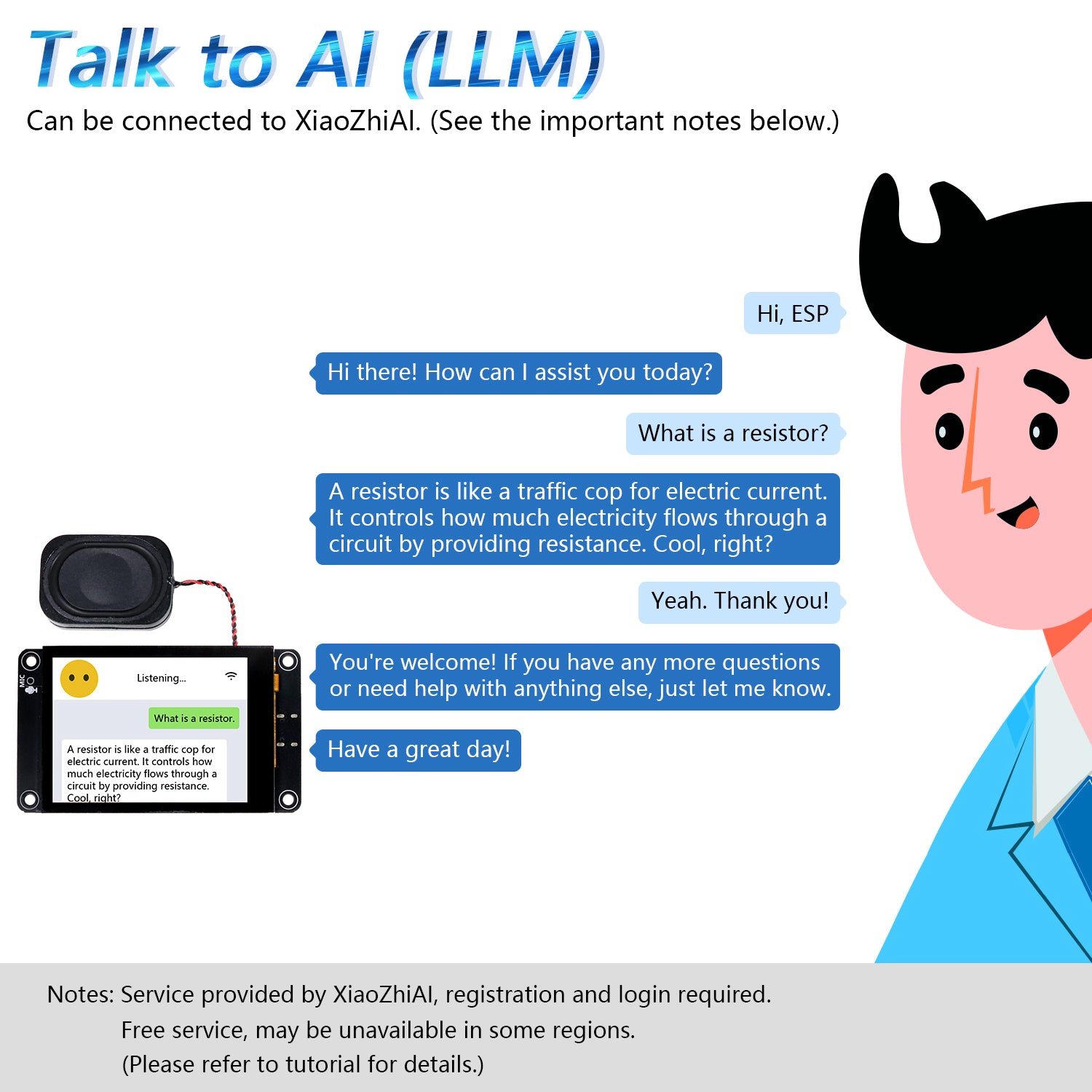 This kit helps you learn ESP32-S3, LVGL GUI library and connection with AI (LLM).